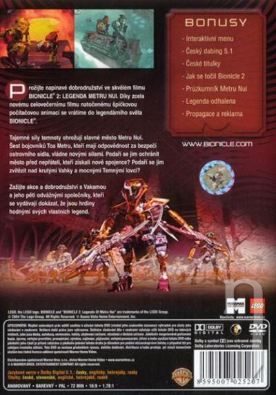 Prežite napínavé dobrodružstvá vo filme BIONICLE 2: LEGENDA METRU NUI. Vďaka vcelku novému celovečernému filmu natočenému špičkovou počítačovou animáciou sa vrátime do legendárneho sveta BIONICLE. Tajomné sily temnoty ohrozujú slávne mesto Metru Nui. Šesť bojovníkov Toa Metru, ktorí majú zodpovednosť za bezpečie ostrovného sídla, vládne novými silami. Podarí sa im ochrániť mesto pred nepriateľmi, ktorí získali nových spojencov? Podarí sa im zvíťaziť nad krutými Vahky a moc...