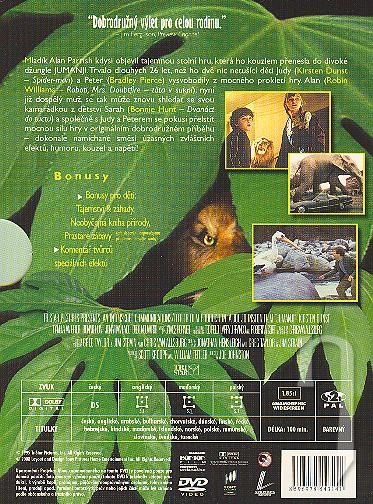 Mladík Alan Parrish kedysi objavil tajomnú stolnú hru, ktorá ho kúzlom preniesla do divokej džungle Jumanji. Trvalo dlhých 26 rokov, než ho dve nič netušiace deti Judy a Peter vyslobodili z mocného prekliatia hry. Alan, teraz už dospelý muž, sa môže znovu stretnúť so svojou kamarátkou z detstva Sarah a spoločne s Judy a Peterom sa pokúsia okabátiť mocnú silu hru v originálnom dobrodružnom príbehu. Film je dokonale namiešaná zmes úžasných zvláštnych efektov, humoru, kúziel a napätia!