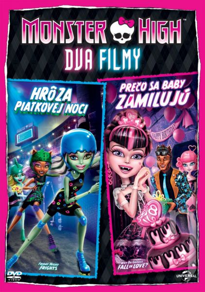 Příšerky z Monster High™ se vrací ve dvou výstředních báječných příbězích, které vás zaručeně dostanou! Když Frankie Stein™ ve zbrusu novém filmu Hrůzy pátečních večerů zjistí, že se se svými kamarády nemůže zúčastnit šampionátu na kolečkových bruslích Skulltimate Roller Maze™, přesvědčí je o tom, že pokud zkusí využit "síly příšerek", nic nemusí být ještě ztracené. Ve snímku Proč se příšerky zamilovávají se dva pohlední mladíci pokusí ukořistit srdce Draculaury™ dřív, než oslaví své sladké 1600. narozeniny. Získejte dvojitou porci zážitků s příšerkami a užijte si dvě fantastická dobrodružství ozdobená lebkami a doslova duchaplnou zábavou!