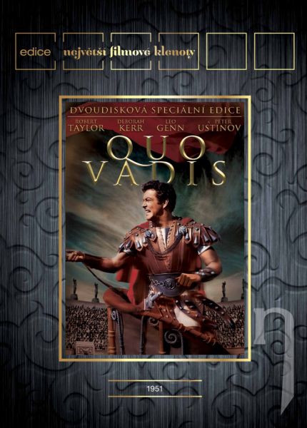 Řím hoří, Nero recituje, křesťanství je na vzestupu. A filmoví diváci se v zástupech hrnou na filmový kolos, který se natáčel léta. Pyšní se osmi oscarovými ® nominacemi* (včetně Nejlepšího filmu) a objevuje se v něm 110 postav a na třicettisíc statistů. Čekají je skvostné obrazy pochodujících legií, zpupného pohanství a děsivá podívaná na mučednictví křesťanů, předhazovaných lvům za jásotu davů v Koloseu. Robert Taylor hraje velitele legie, jehož láska ke křesťanské otrokyni (Deborah Kerr) překračuje propast mezi říší a sektou oddaných věřících. Nade vším ale ční Nero (Peter Ustinov). Císař, šílenec, vrah - neomezený vládce velkolepé – a velkolepě zatracené – slávy, která bývala Římem. Disk 1 – První část filmu Disk 2 – Druhá část filmu