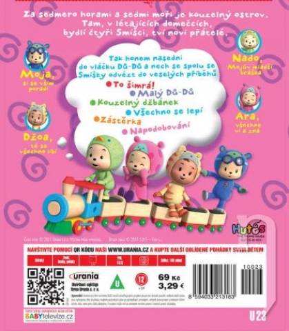 Džoa, které se všechno líbí. Ara, která všechno ví a zná. Moja, který si se vším poradí, stačí mu jen věřit. A také Nado, jeho mladší bráška. Tak honem nasedni do vláčku Dů-Dů a nech se spolu se Smíšky odvézt do veselých příběhů To šimrá – Malý Dů-Dů – Kouzelný džbánek – Všechno se lepí – Zástěrka – Napodobování