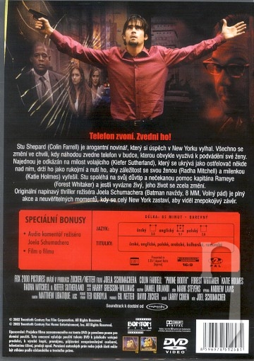 V západním Manhattanu na 53. ulici stojí snad poslední uzavřená telefonní budka v New Yorku. Právě z ní den co den ve stejnou dobu telefonuje arogantní mediální manažer Stuart Shepard začínající herečce Pam. Poslední den před tím, než mají budku zbourat, se však stanou dvě zdánlivě nevinné věci, které samolibému muži převrátí život vzhůru nohama. Nejprve na dvířka telefonní budky zaklepe doručovatel s pizzou, kterou si Stu neobjednal, a vzápětí zazvoní telefon. Shephard udělá tu chybu, že automaticky zvedne sluchátko a tím zpečetí svůj osud. Kdosi neznámý, který však o něm ví překvapivě mnoho, mu začne vyhrožovat. Přesvědčí Sheparda, že pokud nebude poslouchat jeho příkazy, odstřelí ho snajpr, jenž ho má na mušce a hraje si s ním jako kočka s myší. Komorní thriller režíroval Joel Schumacher, v hlavní roli exceluje Colin Farrell. [Zdroj: HBO]