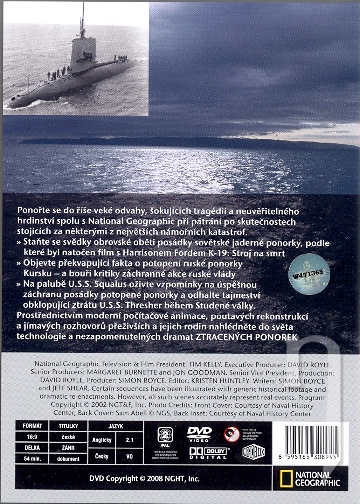 Ponořte se do říše veké odvahy, šokujících tragédií a neuvěřitelného hrdinství spolu s National Geographic při pátrání po skutečnostech stojících za některými z největších námořních katastrof. Staňte se svědky obrovské oběti posádky sovětské jaderné ponorky, podle které byl natočen film s Harrisonem Fordem K-19: Stroj na smrt Objevte překvapující fakta o potopení ruské ponorky Kursku – a bouři kritiky záchranné akce ruské vlády Na palubě U.S.S. Squalus oživte vzpomínky na úspěšnou záchranu posádky potopené ponorky a odhalte tajmeství obklopující ztrátu U.S.S. Thresher během Studené války. Prostřednictvím moderní počítačové animace, poutavých rekonstrukcí a jímavých rozhovorů přeživších a jejich rodin nahlédněte do světa technologie a nezapomenutelných dramat ZTRACENÝCH PONOREK.